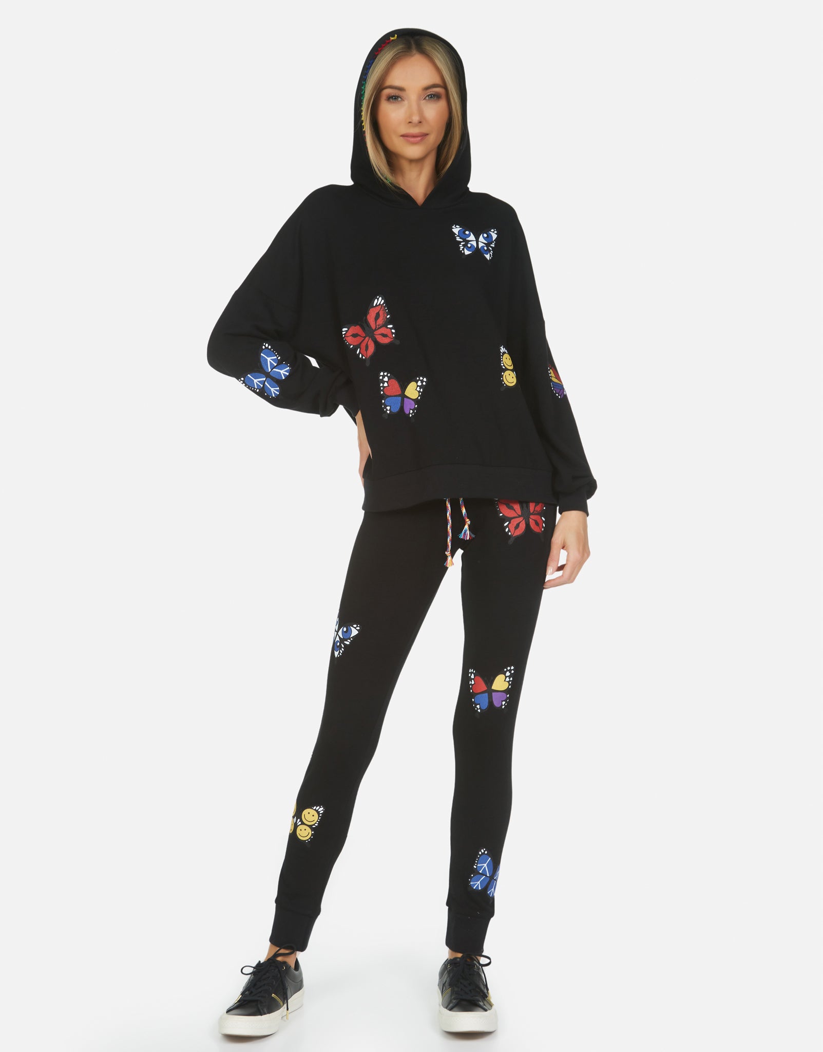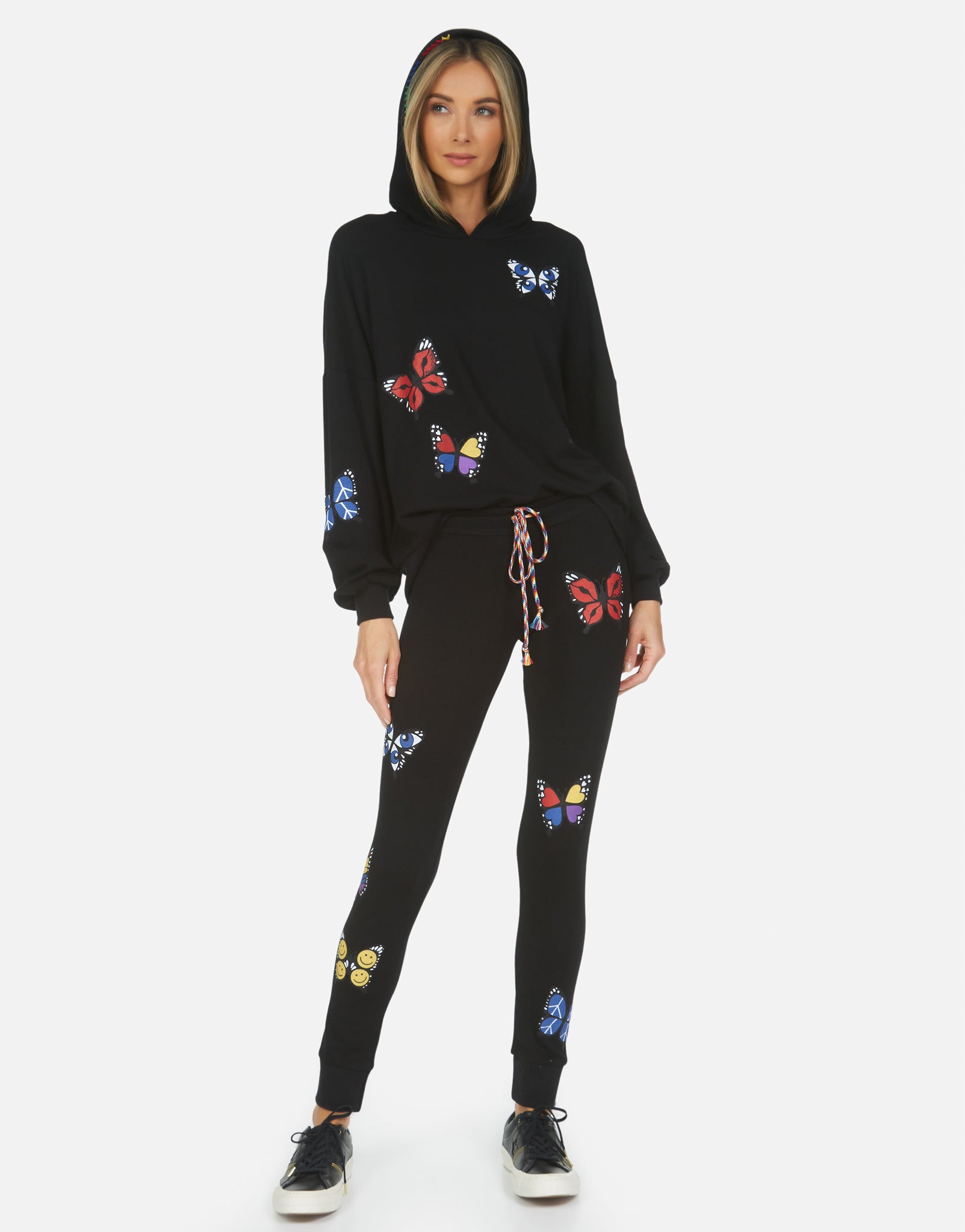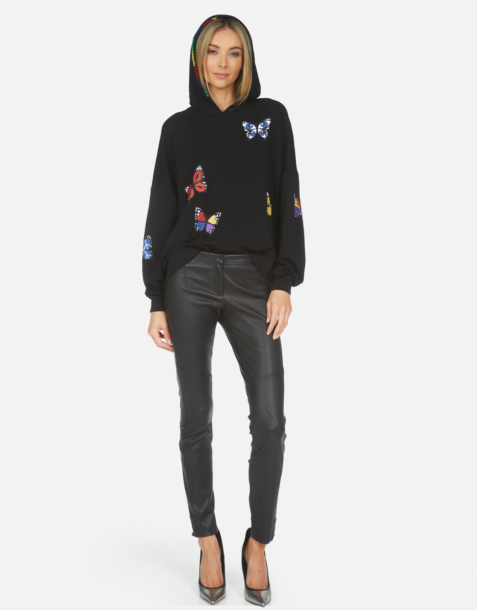 Not what I was expecting. Kind of flimsy, soft cotton. Thought it would be more sweater-like. Also, the butterflies are kitschy, with little smiley faces, etc. In the pic they just look colorful, not cartoonish.